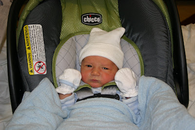 Well our little guy is completely healthy and we were able to head home after our mandatory 48 hour stay in the hospital. This is one of my favorite pictures so far as we put him into his car seat to take him home. He looks ready to take on the world...or maybe just mom and dad.